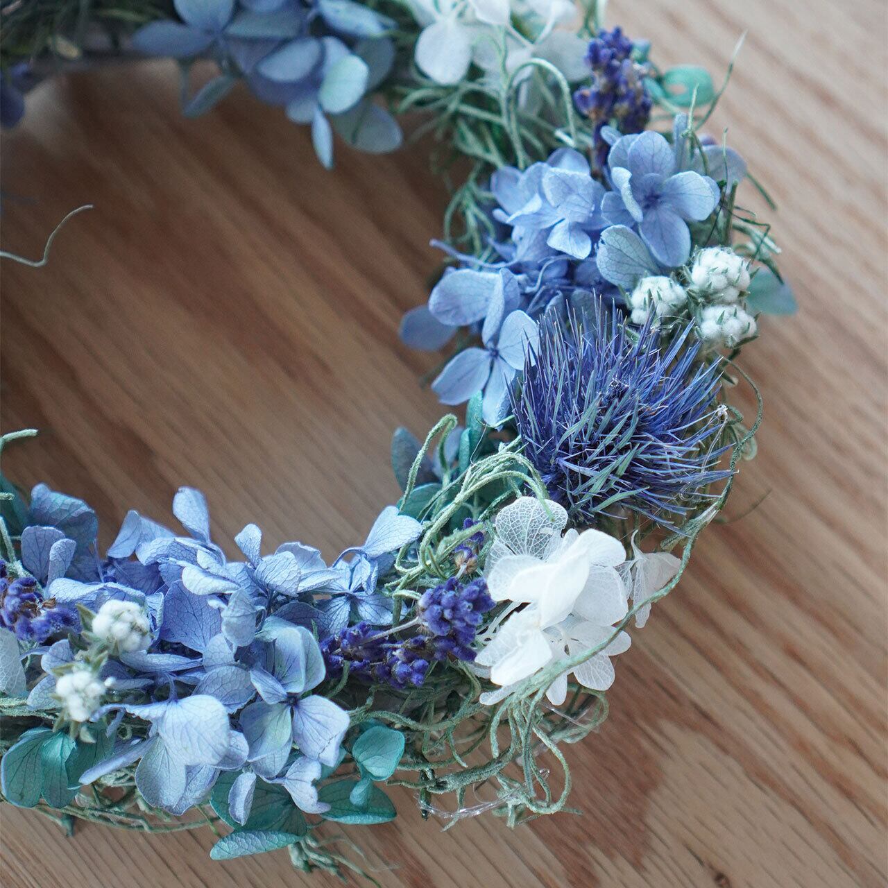 富良野産ラベンダー入りプリザーブドフラワー&ドライフラワーリース S(ブルー&パープル)
